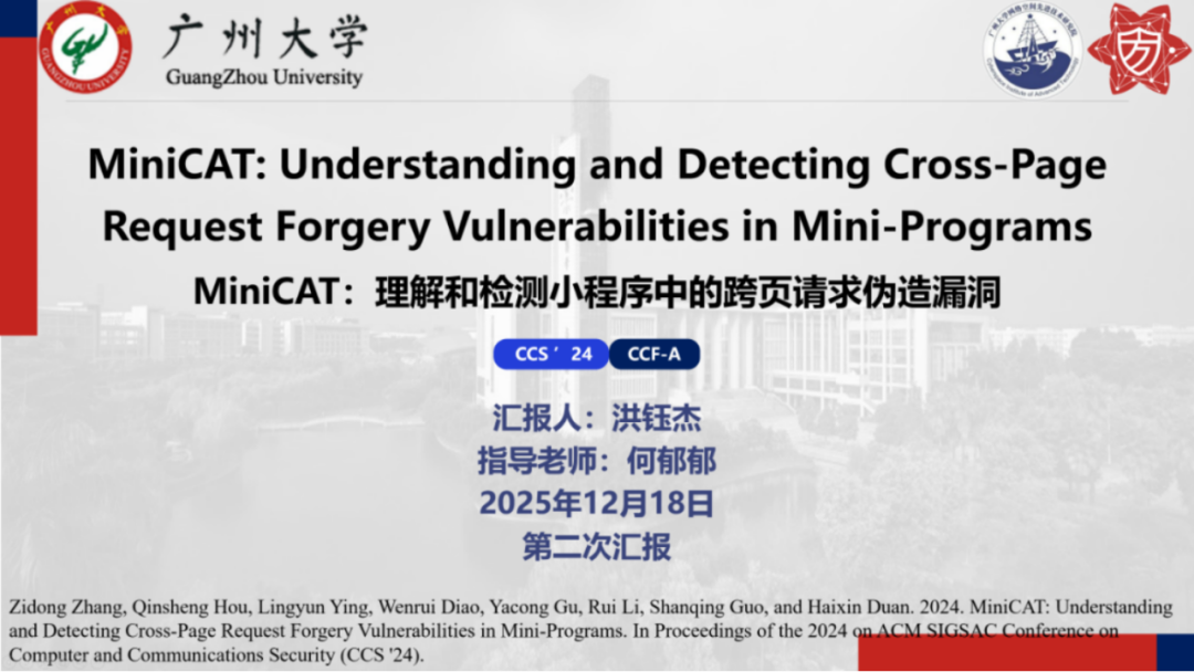 报告题目:【MiniCAT:理解和检测小程序中的跨页请求伪造漏洞】