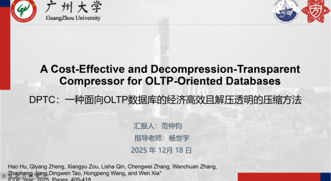 报告题目:【一种面向OLTP数据库的经济高效且解压透明的压缩方法】