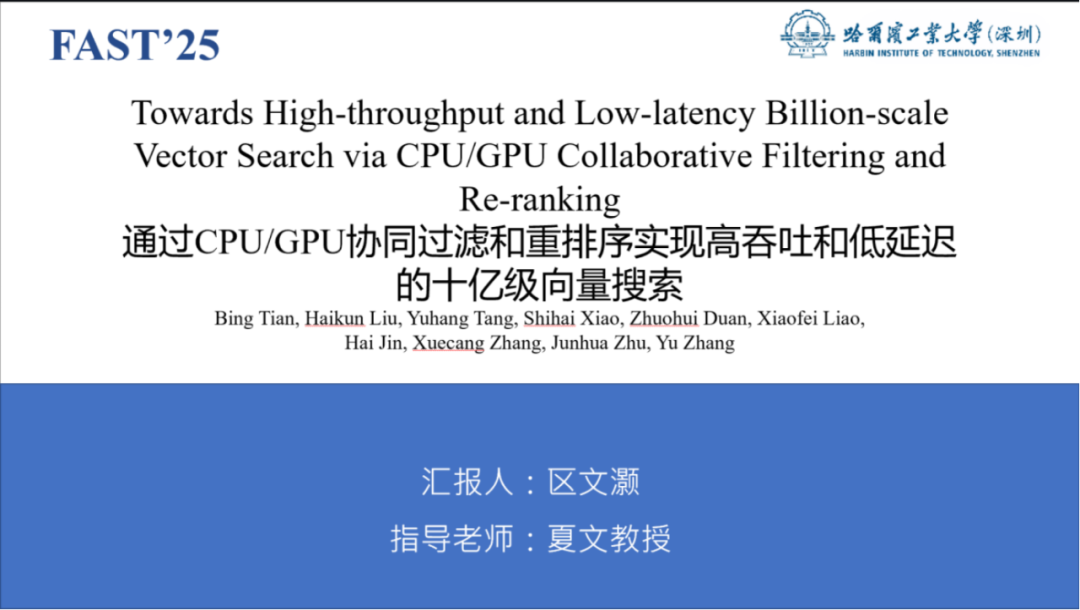 报告题目:【通过CPU/GPU协同过滤和重排序实现高吞吐和低延迟的十亿级向量搜索】