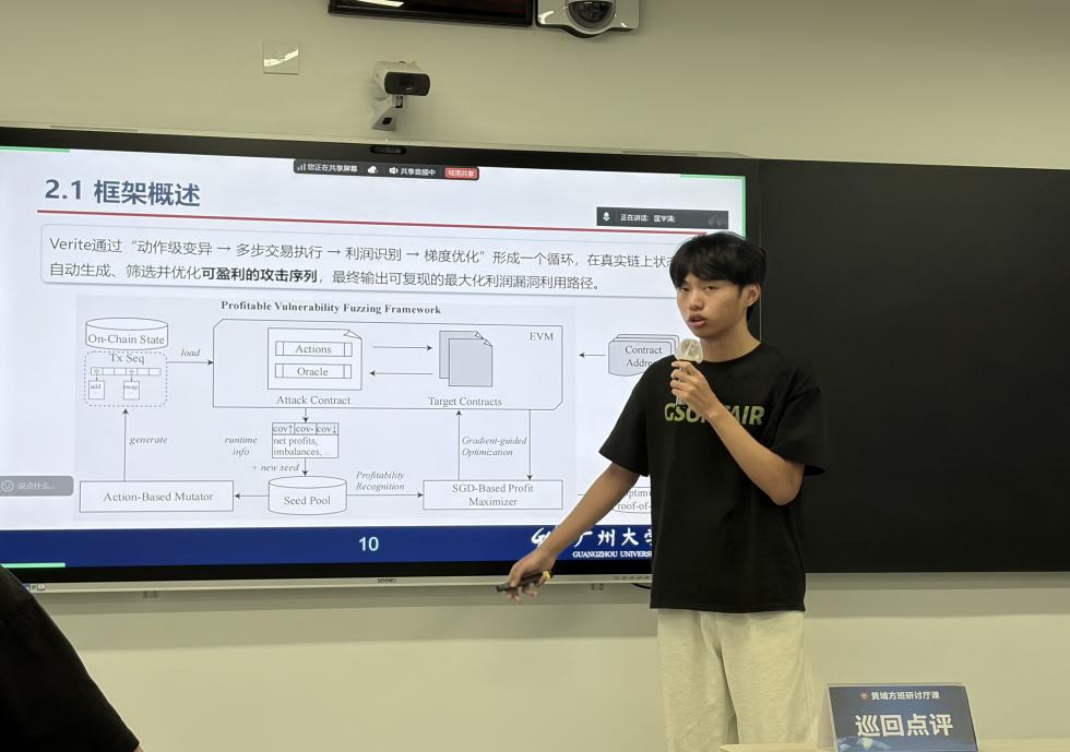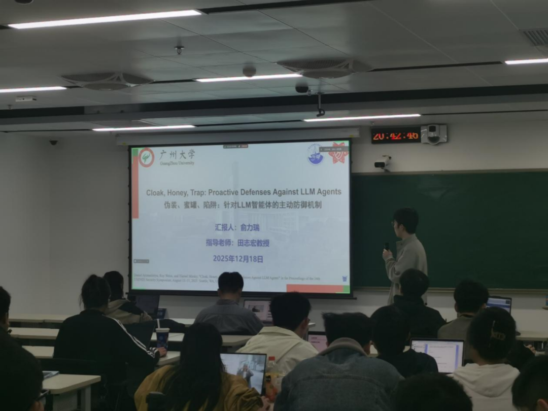 2025 年12月18日 18:00-21:30,第208期方班学术研讨厅在黄埔研究生院B2栋成功举办。广州大学网络空间安全学院名誉院长方滨兴老师,主点评吴世忠老师,张彦春老师,贾焰老师,徐贯东老师,郭世泽老师,李舟军老师,副点评陈艳利老师,吴昊天老师,唐可可老师,张帆老师,欧阳典老师,张登辉老师,张鹏老师全程参与了课堂的教学,并对同学们的报告逐一进行了指导点评。同时参与的还有网络空间安全学院的部分老师,广州大学方班八期的252名学生。