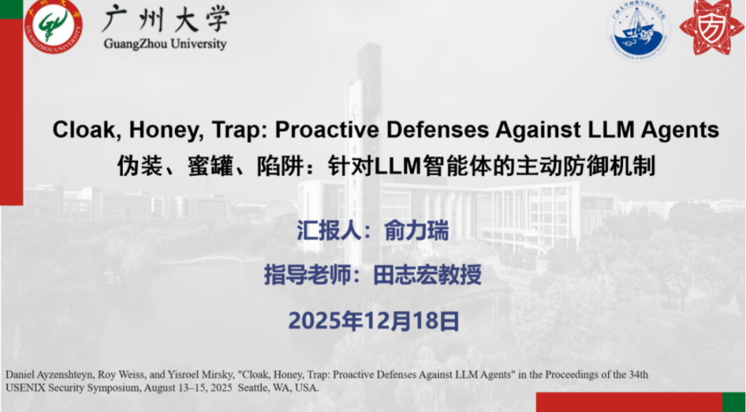 报告题目:【伪装、蜜罐、陷阱:针对LLM智能体的主动防御机制】