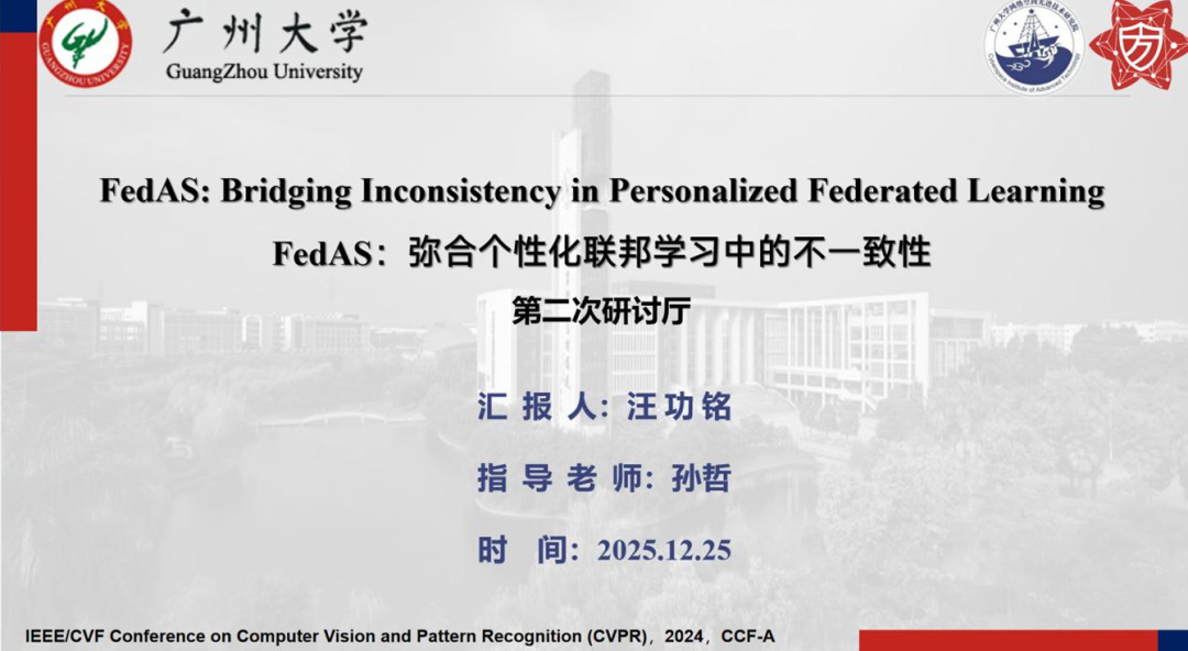 报告题目:【FedAS:弥合个性化联邦学习中的不⼀致性】