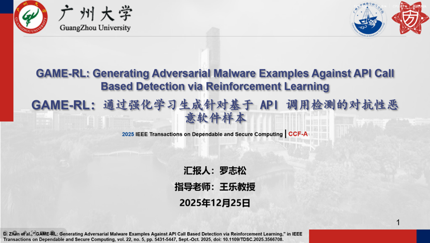报告题目:【GAME-RL:通过强化学习生成针对基于 API 调用检测的对抗性恶意软件样本】