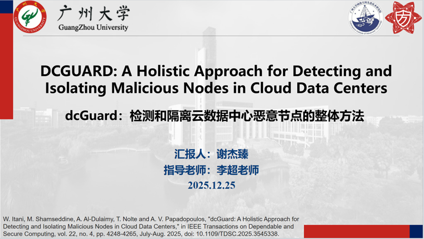 报告题目:【dcGuard:检测和隔离云数据中心恶意节点的整体方法】
