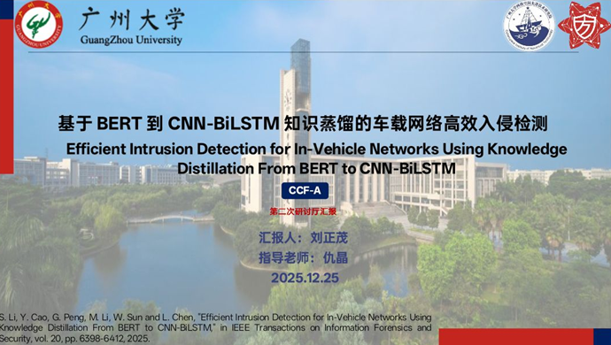 报告题目:【基于BERT到CNN-BiLSTM知识蒸馏的车载网络高效入侵检测】