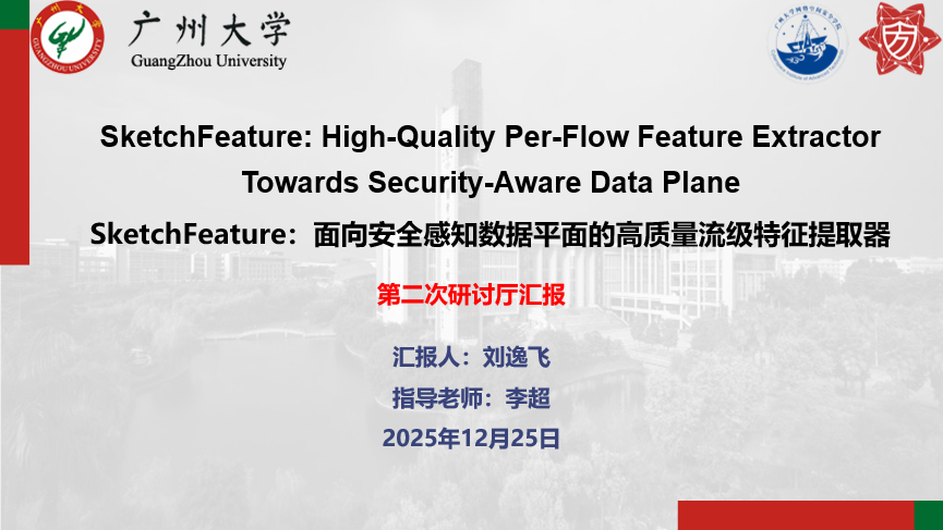 报告题目:【SketchFeature:面向安全感知数据平面的高质量流级特征提取器】