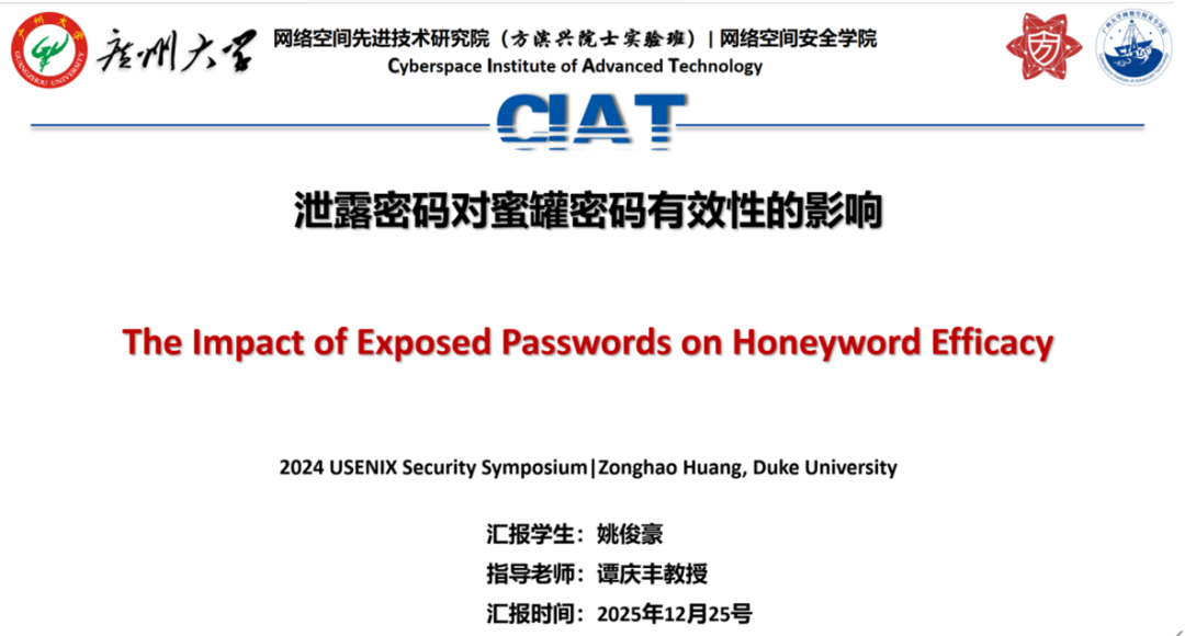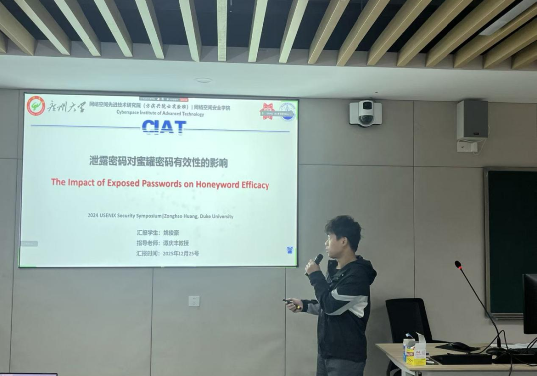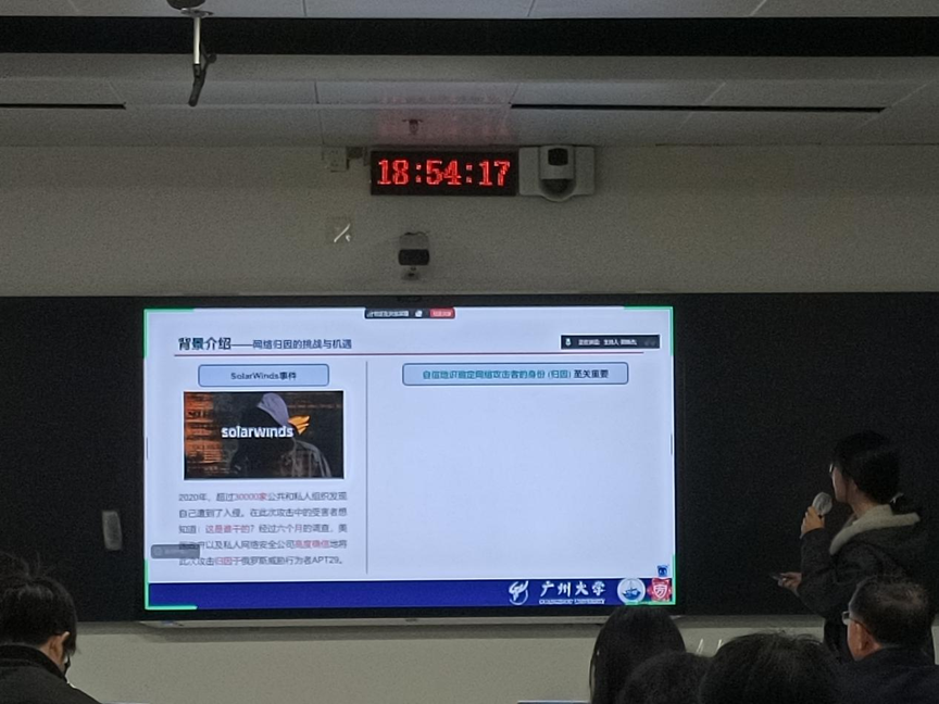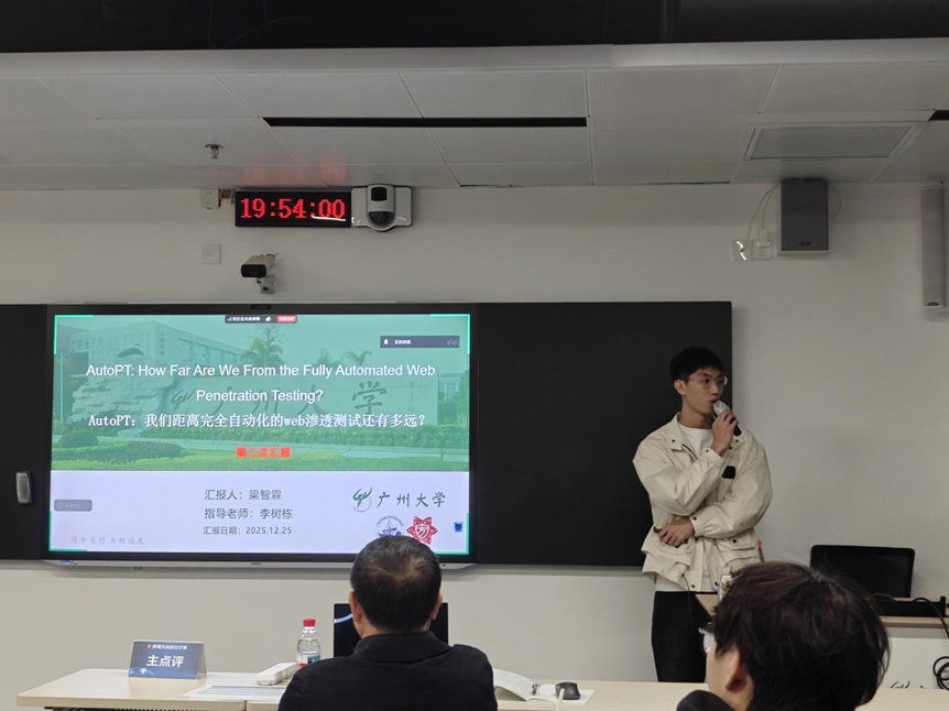 2025 年12月25日 18:00-21:30,第215期方班学术研讨厅在黄埔研究生院B2栋成功举办。广州大学网络空间安全学院名誉院长方滨兴老师,主点评吴世忠老师,张彦春老师,周万雷老师,黄兴忠老师,李建新老师,王文敏老师。副点评陈艳丽老师,吴昊天老师,唐可可老师,张帆老师,欧阳典老师,张登辉老师,张鹏老师全程参与了课堂的教学,并对同学们的报告逐一进行了指导点评。同时参与的还有网络空间安全学院的部分老师,广州大学方班八期的252名学生。