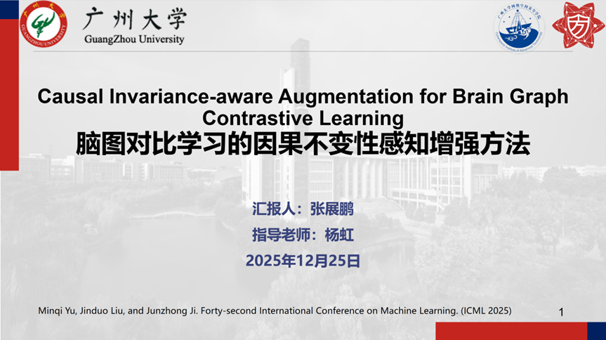报告题目:【脑图对比学习的因果不变性感知增强方法】