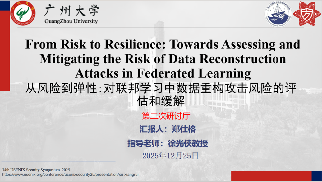 报告题目:【从风险到弹性:对联邦学习中数据重构攻击风险的评估和缓解】