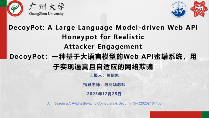 报告题目:【DecoyPot:一种基于大语言模型的Web API蜜罐系统,用于实现逼真且自适应的网络欺骗】