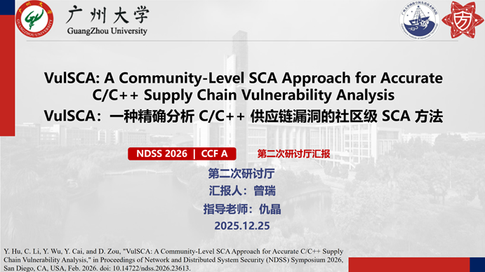报告题目:【VulSCA:一种精确分析 C/C++ 供应链漏洞的社区级 SCA 方法】