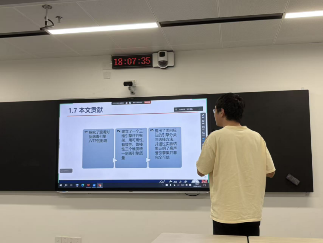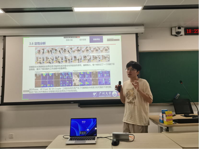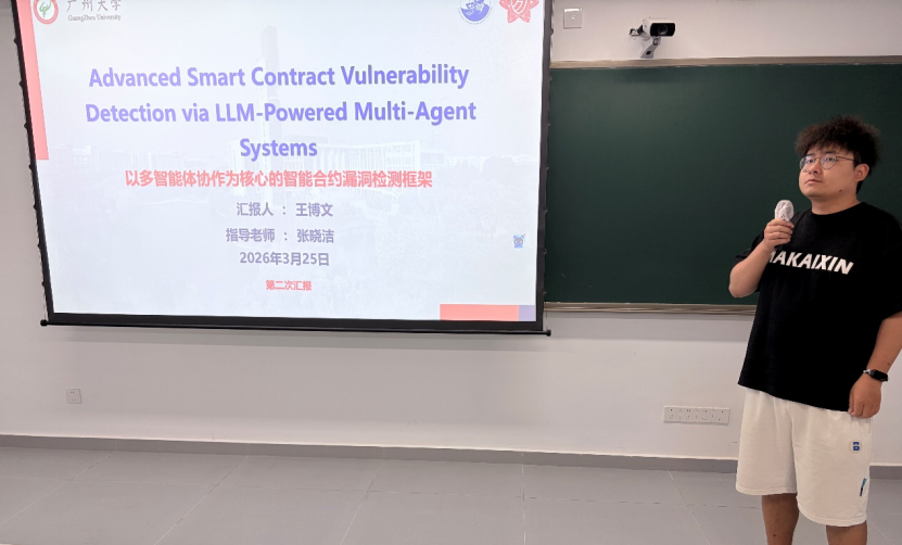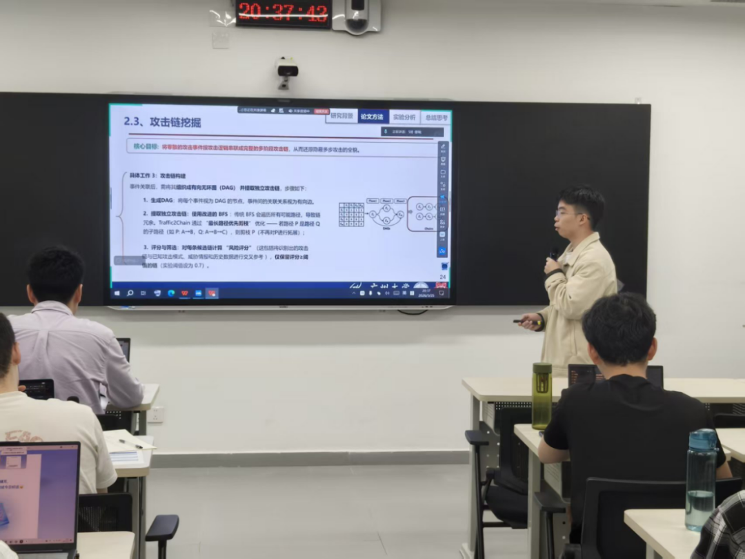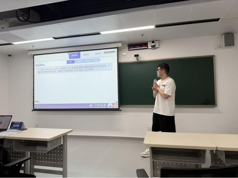 同时参与的还有网络空间安全学院的部分老师,广州大学方班八期的全体学生。本次研讨厅分为七个小组进行。第一组汇报的同学有娄浩楠,马镓鸿,潘锐轩,王博文;第二组汇报的同学有张恒,许刚,易子文,熊传恒;第三组汇报的同学有李煜晨,郭永强,魏晨豪,刘鸿智;第四组汇报的同学有李京宸,李茂,李明洁,刘慧婷;第五组汇报的同学有舒任彬,黄佰恩,禤子弘,张莹;第六组汇报的同学有邓建杰,梁家豪,万嘉豪,陈鸿烨;第七组汇报的同学有陈胤霖,莫俊辉,王博雅,任俊。