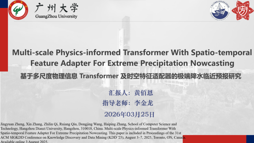 报告题目:【基于多尺度物理信息 Transformer 及时空特征适配器的极端降水临近预报研究】