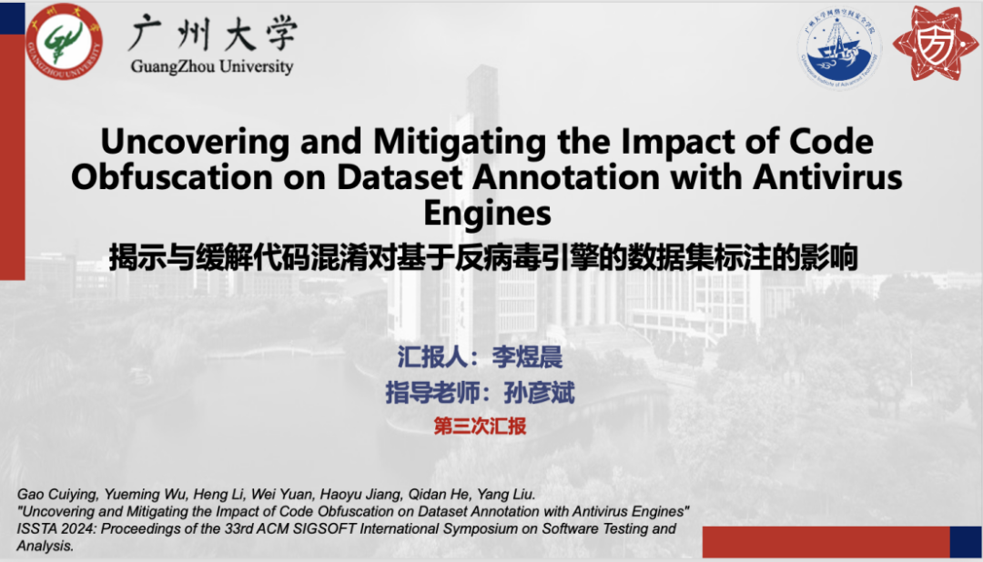 报告题目:【揭示与缓解代码混淆对基于反病毒引擎的数据集标注的影响】