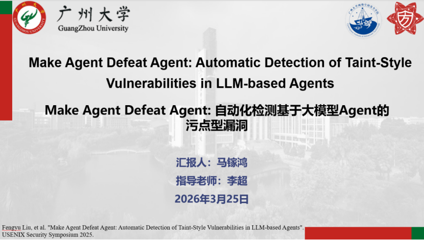报告题目:【 Make Agent Defeat Agent: Automatic Detection of Taint-StyleVulnerabilities in LLM-based Agents】