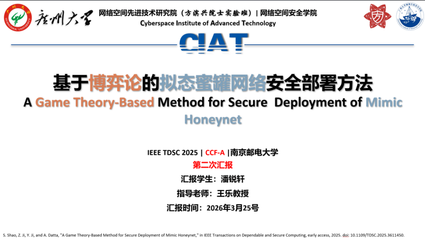 报告题目:【基于博弈论的拟态蜜罐网络安全部署方法】