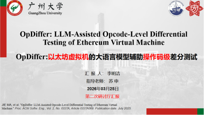 报告题目:【OpDiffer:以太坊虚拟机的大语言模型辅助操作码级差分测试】