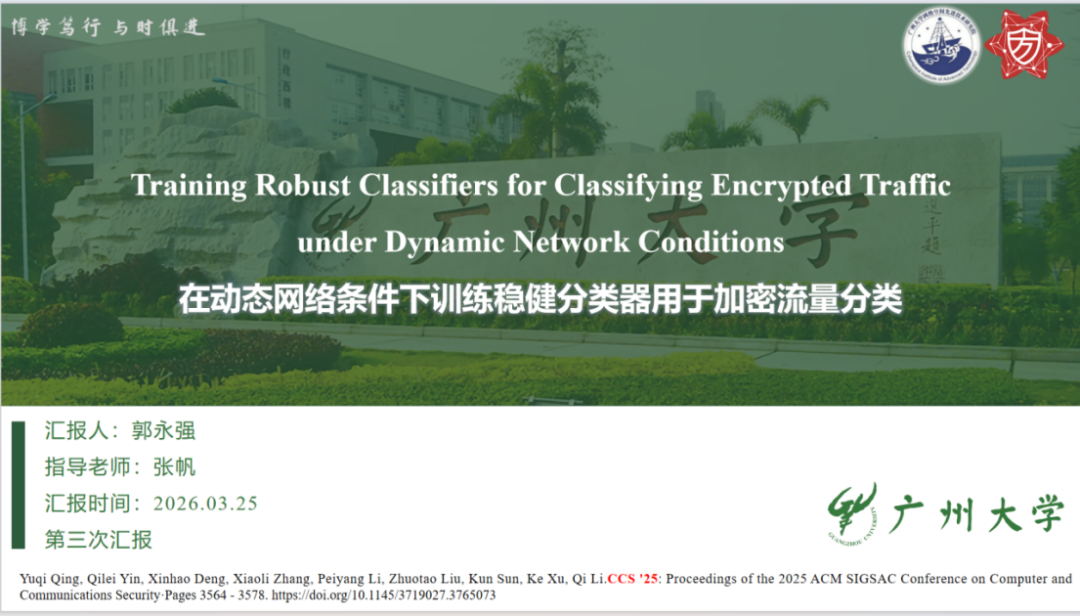 报告题目:【在动态网络条件下训练稳健分类器用于加密流量分类】