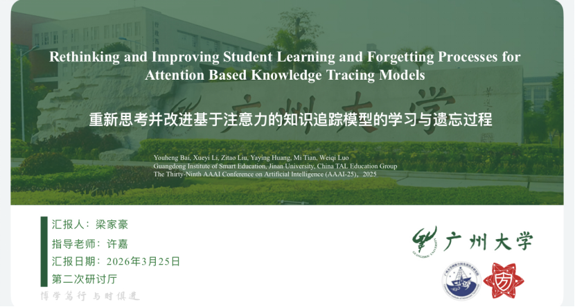 报告题目:【重新思考并改进基于注意力的知识追踪模型的学习与遗忘过程】