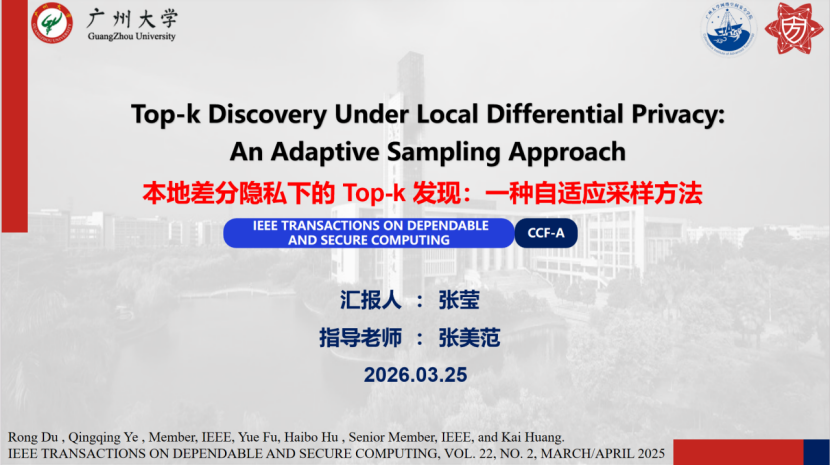 报告题目:【本地差分隐私下的Top-k发现:一种自适应采样方法】