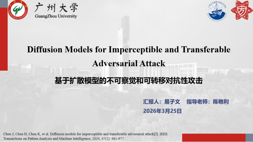报告题目:【基于扩散模型的不可察觉和可转移对抗性攻击】