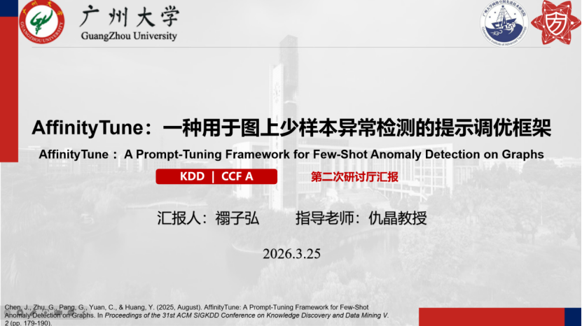 2、汇报对核心技术模块讲解不够清晰,对多任务构建、联合优化及元学习的表述存在模糊之处,建议加强对模型收敛性、任务规模与泛化能力的论证。