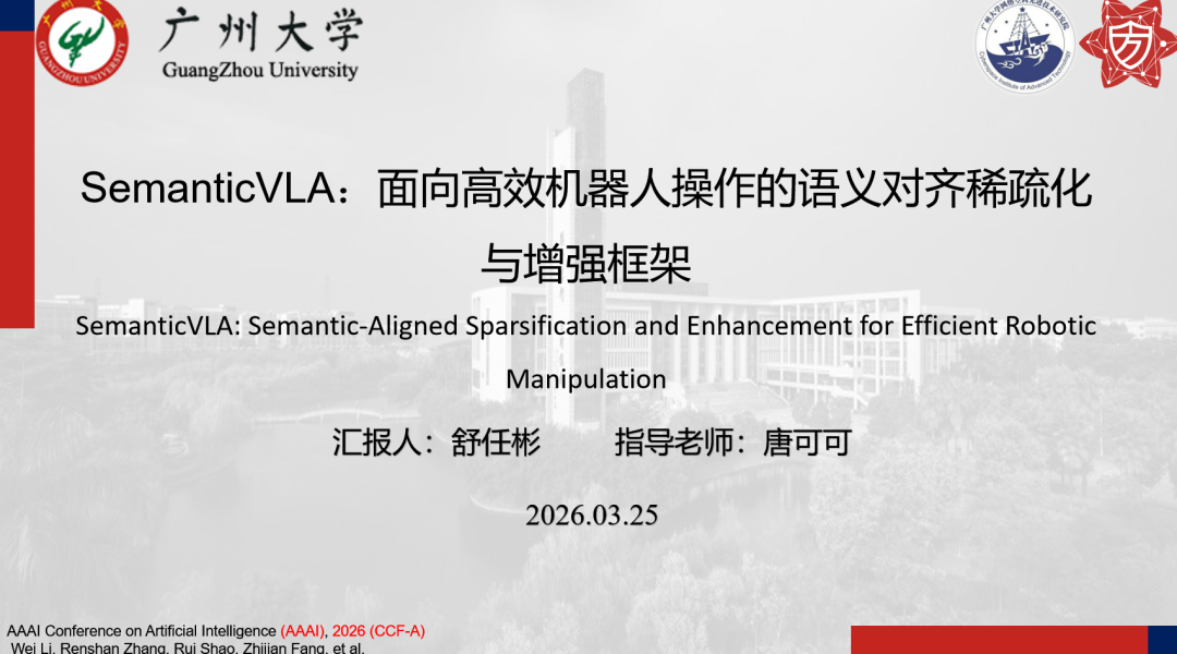 报告题目:【SemanticVLA:面向高效机器人操作的语义对齐稀疏化与增强框架】