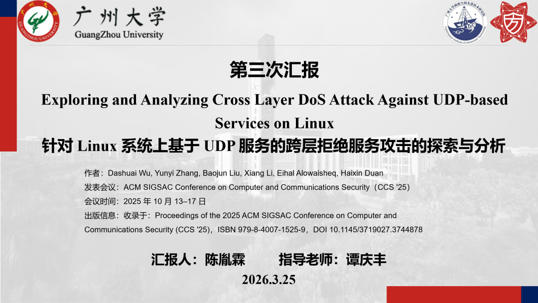 报告题目:【针对 Linux 系统上基于 UDP 服务的跨层拒绝服务攻击的探索与分析】
