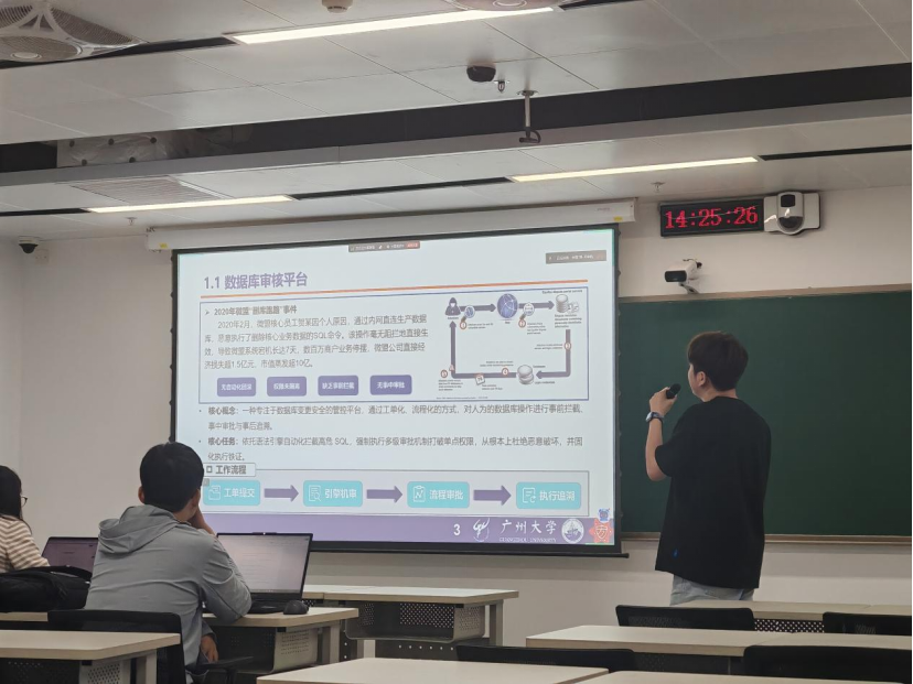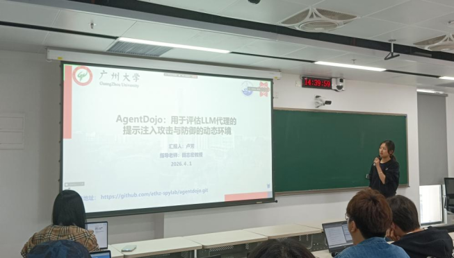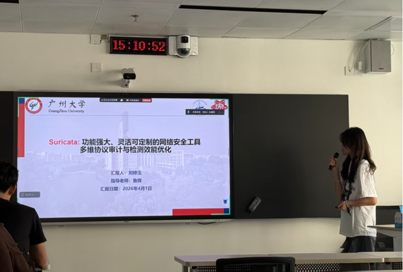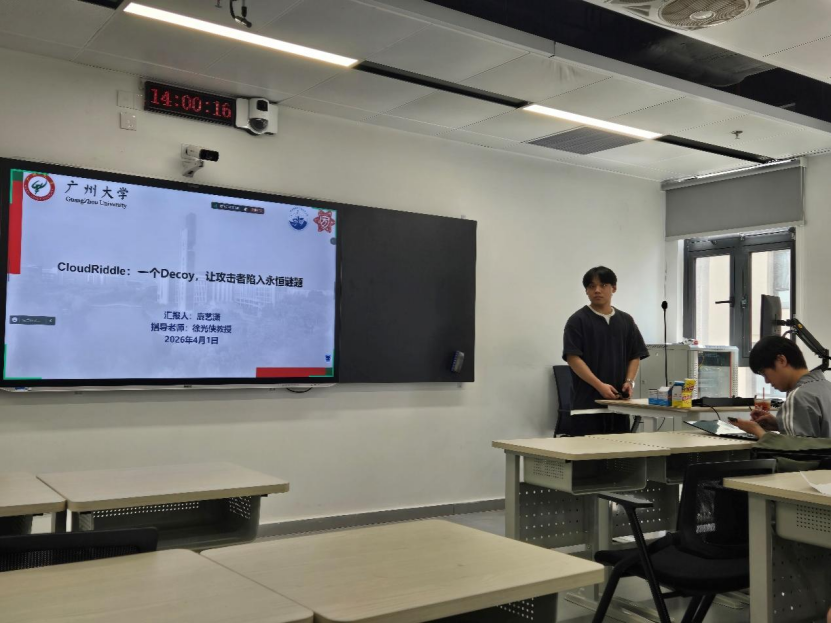 2026年4月1日 14:00-17:00,第111期方班演武堂在广州大学黄埔校区B2栋博信楼成功举办,绿盟班、海康班、天融信班、安天班、任子行班、启明星辰班、安恒班7个企业冠名教学班的企业导师,以及方班八期全体学生和网安学院部分老师参与了课堂教学。