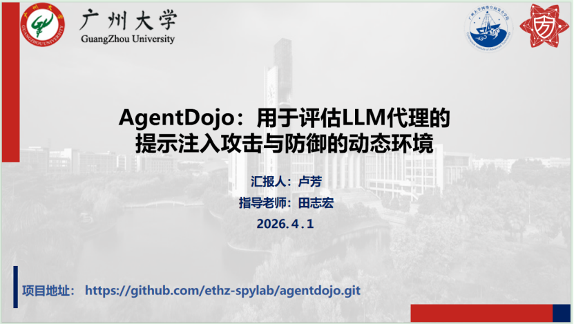 报告题目:AgentDojo:用于评估LLM代理的提示注入攻击与防御的动态环境