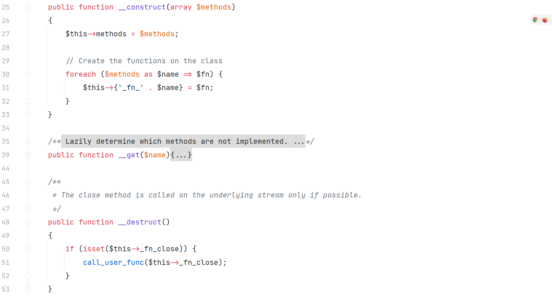 $fn = new FnStream(array('close'=>'phpinfo'));